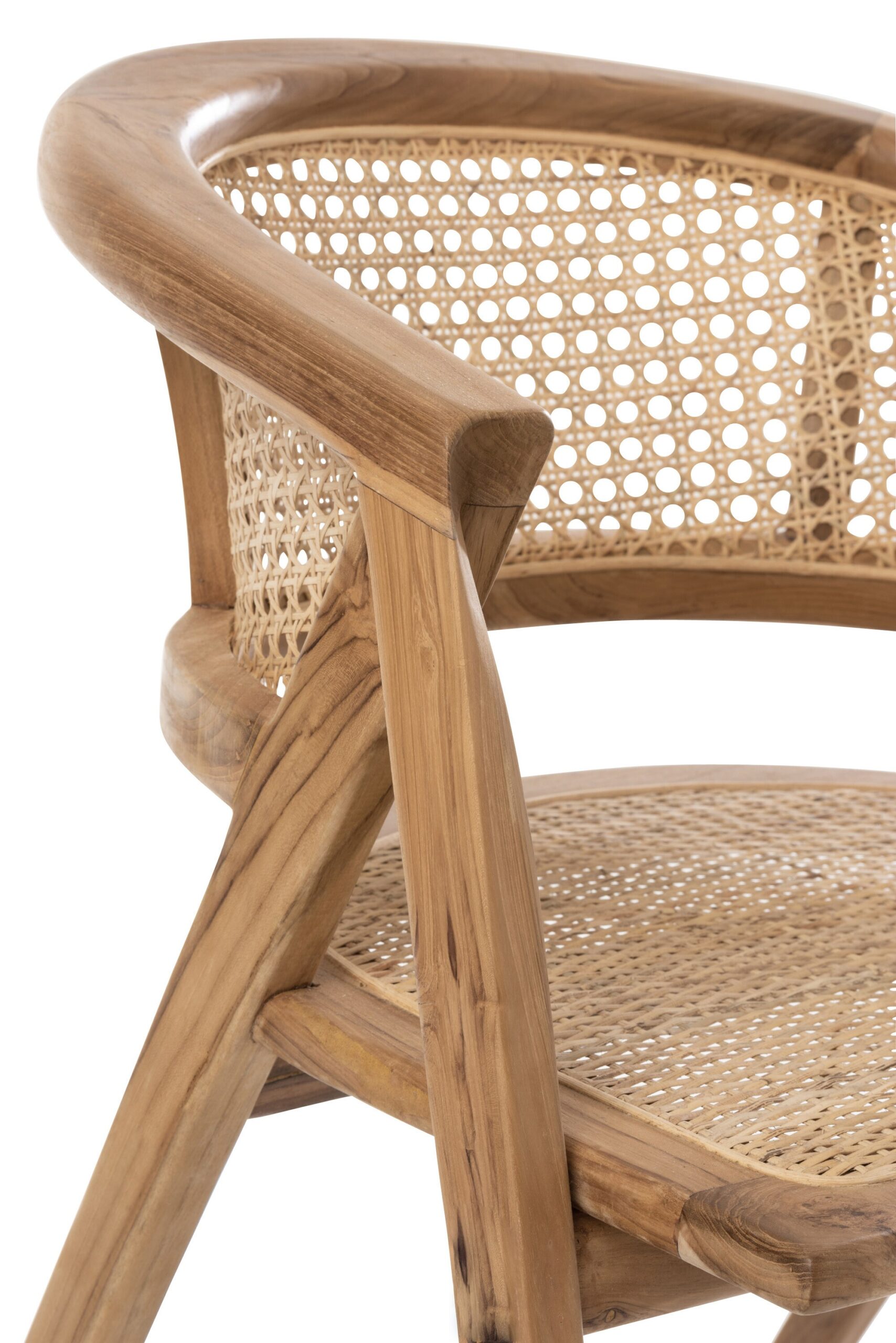 Denne stol er skabt med både design og funktionalitet for øje. Det ergonomiske design sikrer høj komfort, så du kan sidde behageligt ved spisebordet i længere tid. Med en siddehøjde på 45 cm passer stolen til de fleste spiseborde, og de præcise mål gør den velegnet til både mindre og større rum. Den robuste konstruktion i teaktræ og det holdbare flet betyder, at stolen kan bruges hver dag uden at miste sit flotte udtryk eller kvalitet.
