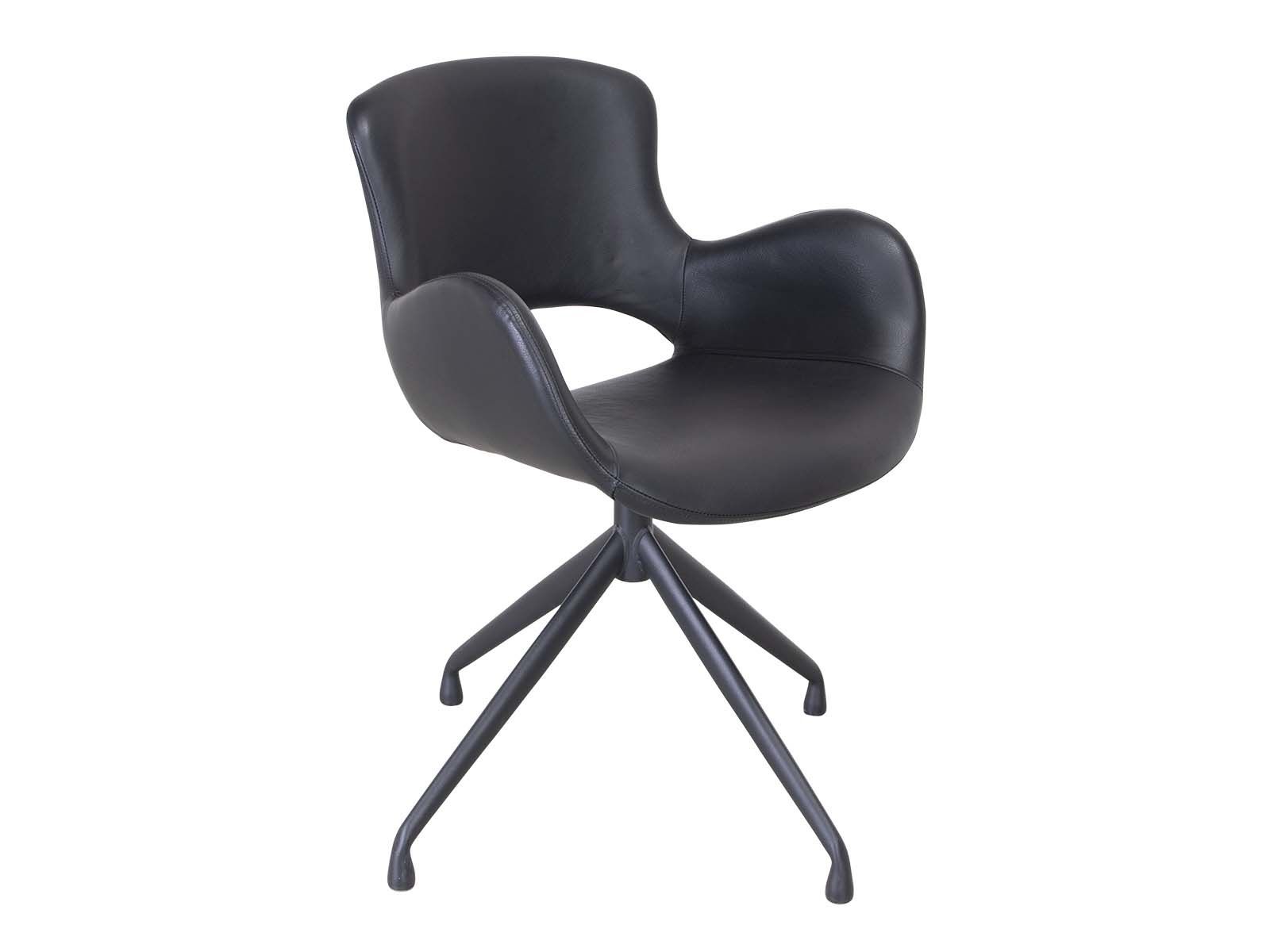 Stolens sorte pulverlakerede stel giver en moderne kontrast til læderets varme toner og tilføjer en stabil og robust konstruktion. Det roterbare stel gør stolen ekstra funktionel og alsidig, hvilket gør den ideel til både spisestuen, kontoret og mødelokalet. Uanset om den bruges til lange middage eller som en del af en arbejdsstation, sikrer stellets fleksibilitet optimal brugervenlighed.