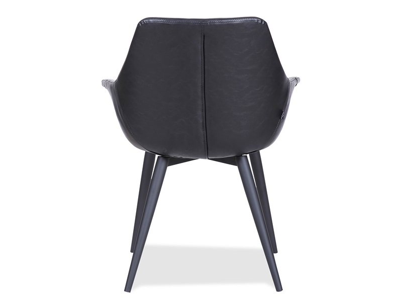 House of Sander Signe spisebordsstol i sort er et perfekt valg til dig, der ønsker en stol, der kombinerer moderne æstetik og industrielt design med maksimal komfort. Stolens polstrede sæde og ryg er fremstillet af slidstærkt PU-læder i en tidløs sort farve, der giver et elegant og minimalistisk udtryk. Det sorte pulverlakerede stel understøtter stolens industrielle look og tilføjer både stabilitet og holdbarhed.