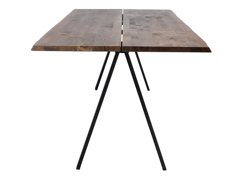 Uanset om understellet er i mat eller blankt sort metal, giver det et moderne og stilrent udtryk, der passer perfekt til både nordisk minimalisme og industrielt design. Den visuelle balance mellem det rå metal og det varme træ skaber en dynamisk og indbydende stemning i rummet.