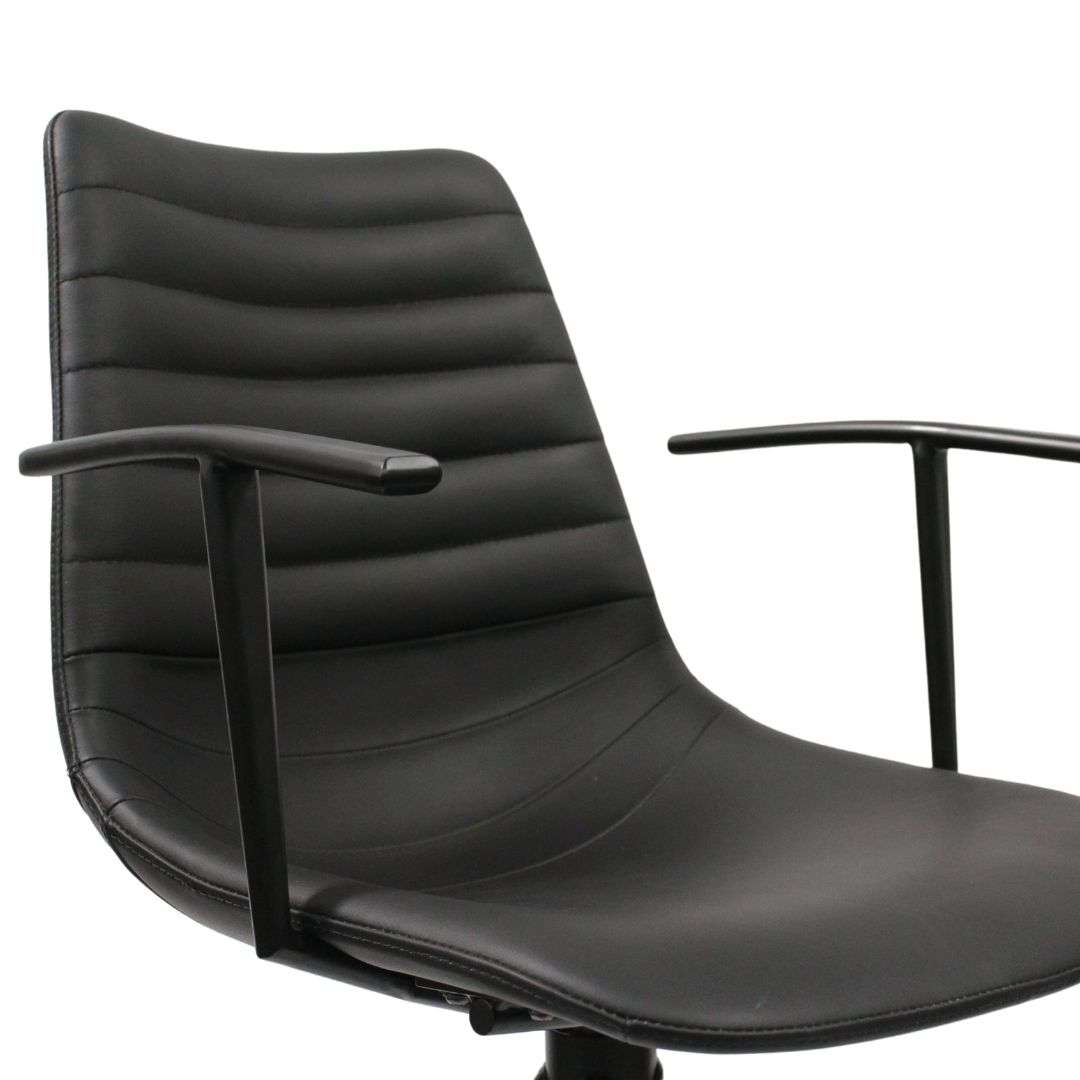 Spisebordsstol Selma , Okse LÆDER Sort og armlæn.