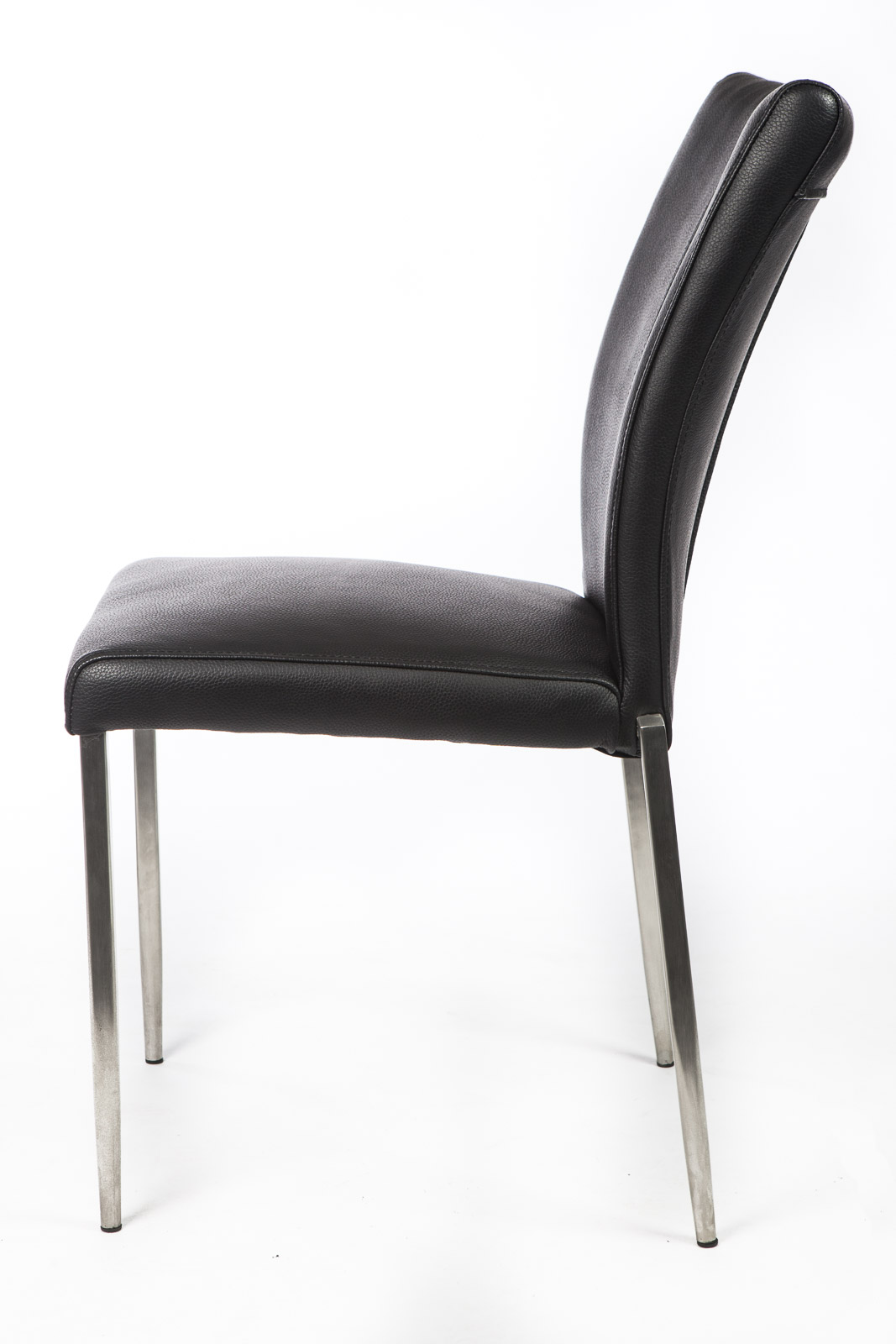 Stolen er fremstillet med et lædersæde og ryglæn, som sikrer både komfort og holdbarhed. Det bløde læder giver en behagelig siddeoplevelse og er samtidig nemt at vedligeholde, hvilket gør stolen ideel til daglig brug. Den høje ryg støtter kroppen og bidrager til en ergonomisk korrekt siddeposition, der gør stolen behagelig, selv under længere måltider.