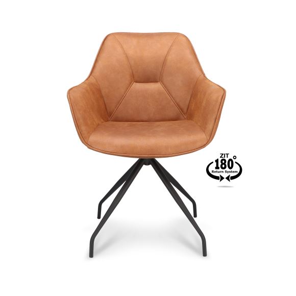 Lexpo Anna spisestuestol m/armlæn, mikrolædertyr, kamel/sort metal