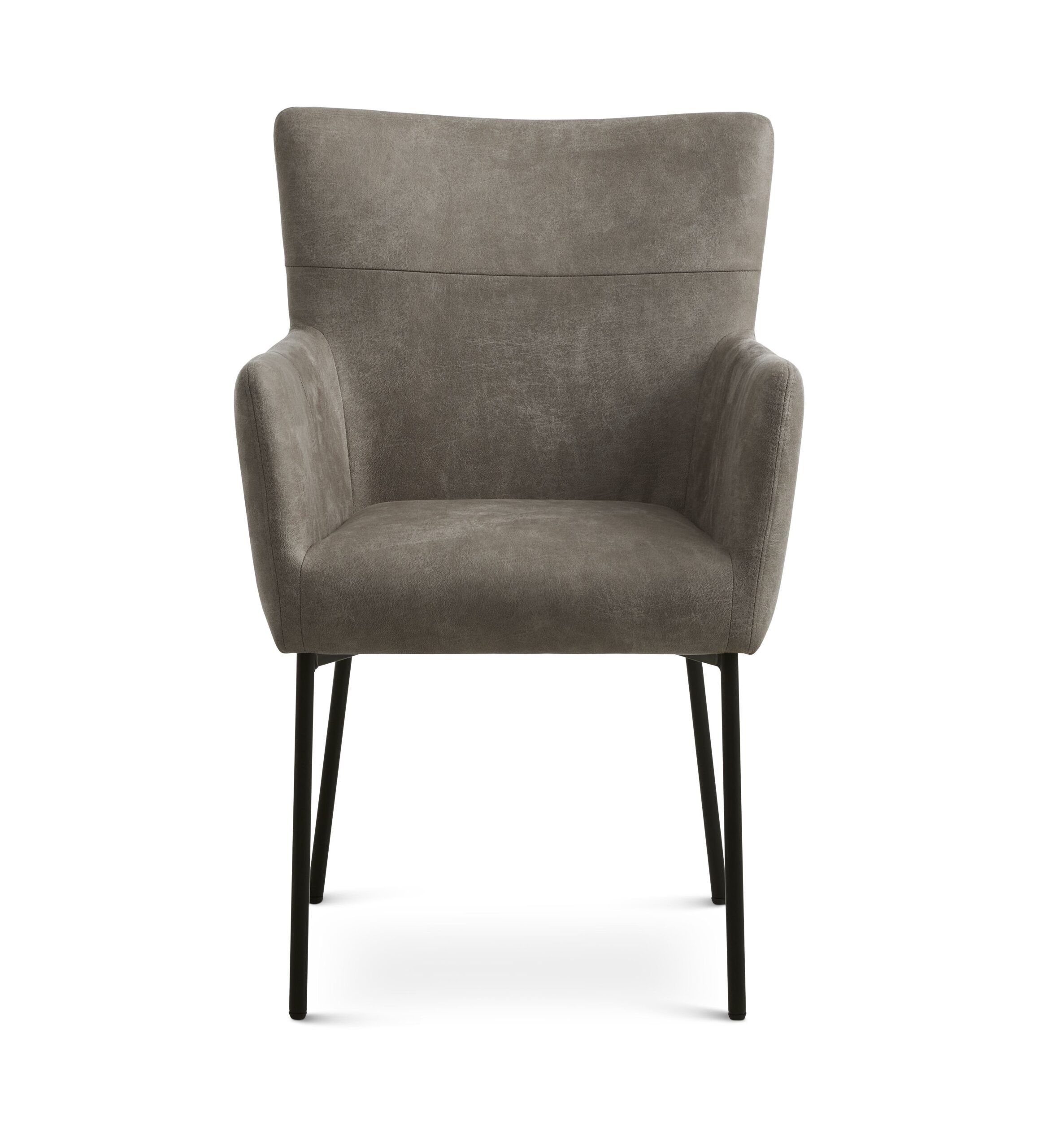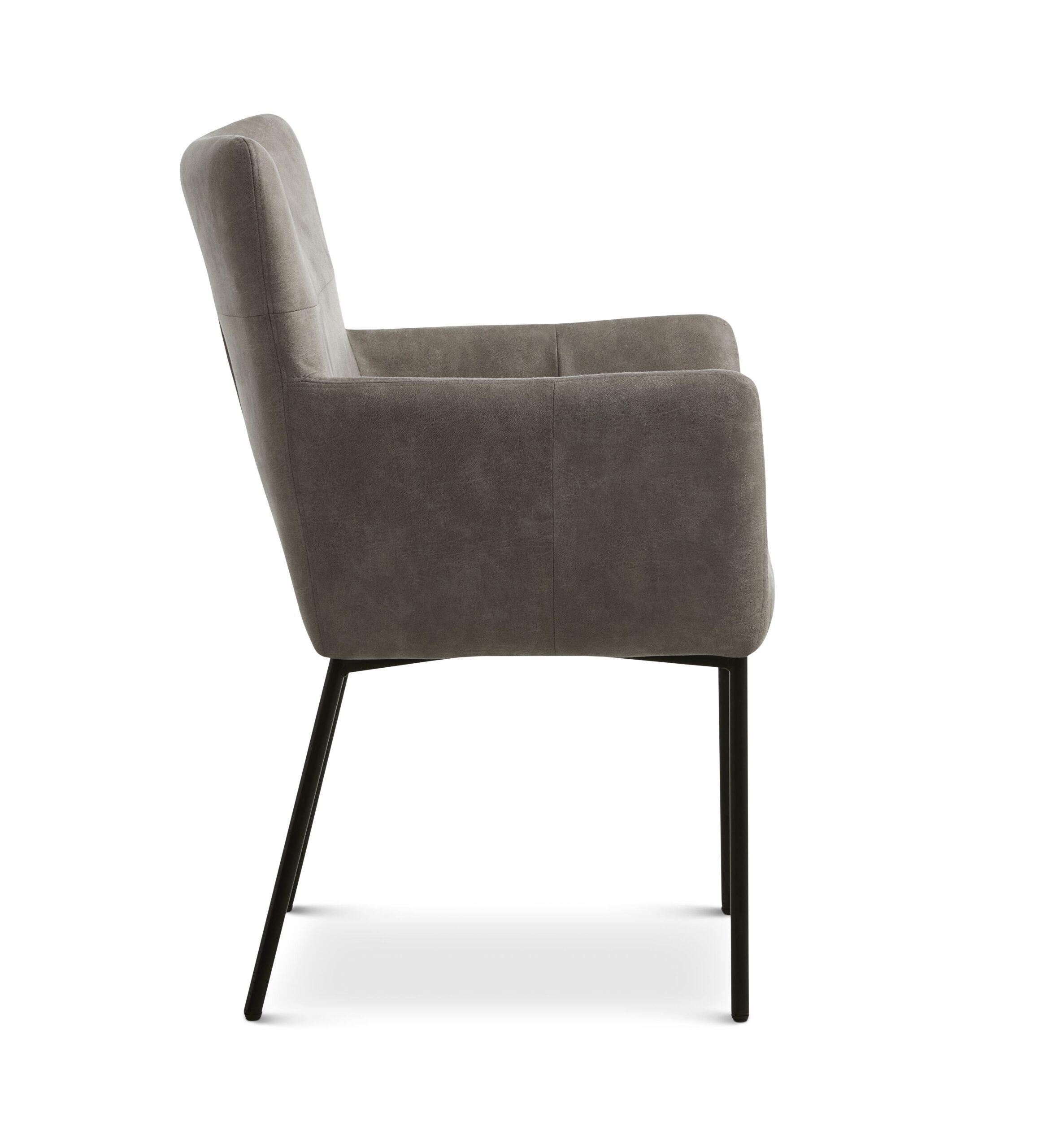 Ellie spisebordsstol med armlæn – mikrofiberlæder i ler og sort metalstel