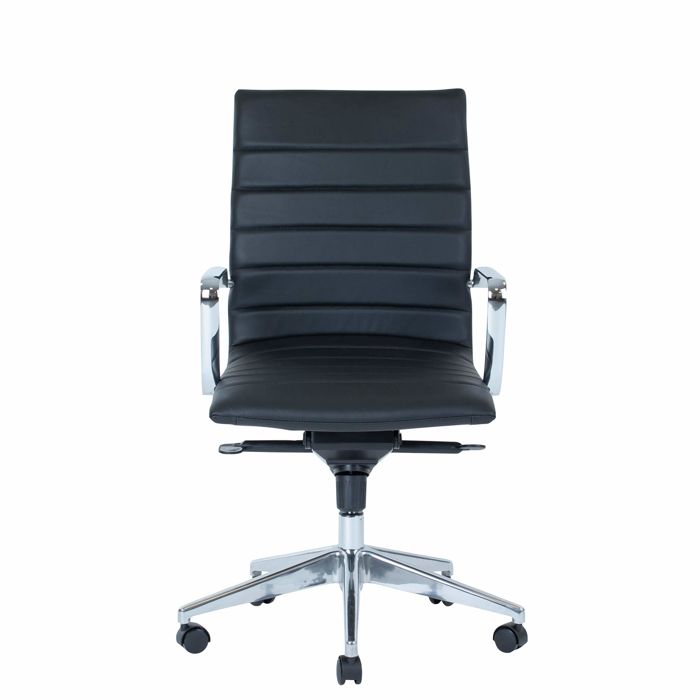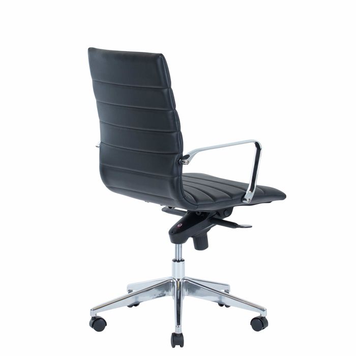 Det klassiske amerikanske design er velkendt og passer godt ind i de fleste mødelokaler eller på kontoret. Stolen er med armlæn i blankt aluminium, fodkryds i poleret aluminium og sorte nylonhjul. Der er polstring på sæde og ryg for ekstra komfort. Bemærk også de dekorative syninger på sæde og ryg.