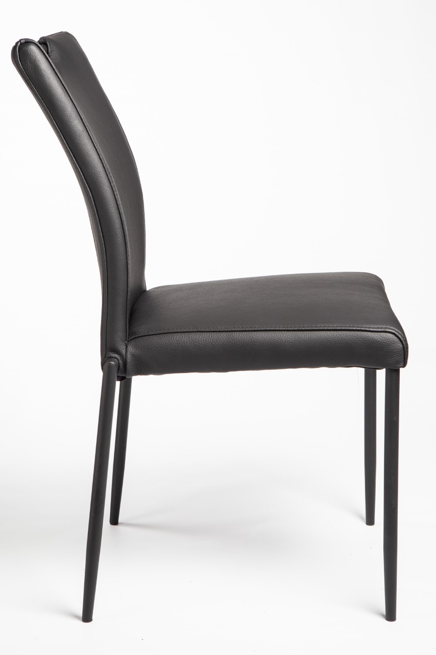 Læderets sorte farve og glatte overflade gør det nemt at kombinere stolen med forskellige typer borde og farveskemaer i dit hjem. Uanset om du har et rustikt træbord, et moderne glasbord eller et klassisk spisebord, vil E-40D tilføje et strejf af elegance og funktionalitet til rummet. Dens enkle og tidløse design gør den til en investering, der aldrig går af mode.